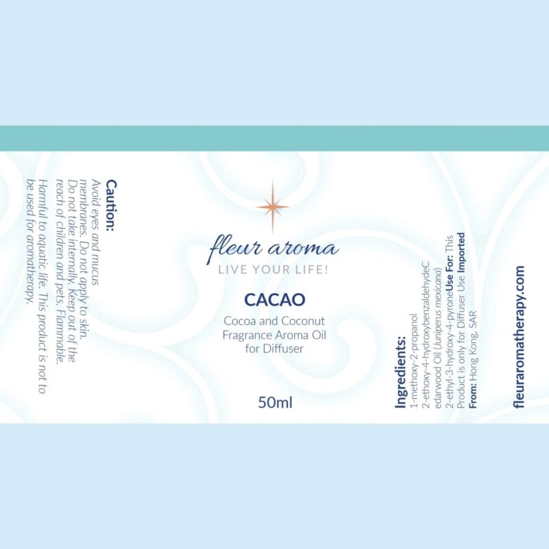 | Recommendations: | “Do you want chocolate without the calories and guilt? Here is Cacao! I absolutely ‘LOVE’ diffusing this aroma in my kitchen area; it has such a rich yet fresh aroma with the synergy of Cocoa and Coconut. This blend makes a great gift for chocolate obsessed friends, and I promise you will not be disappointed with CACAO!” Fleur Abajian RA (Registered Aromatherapist). |