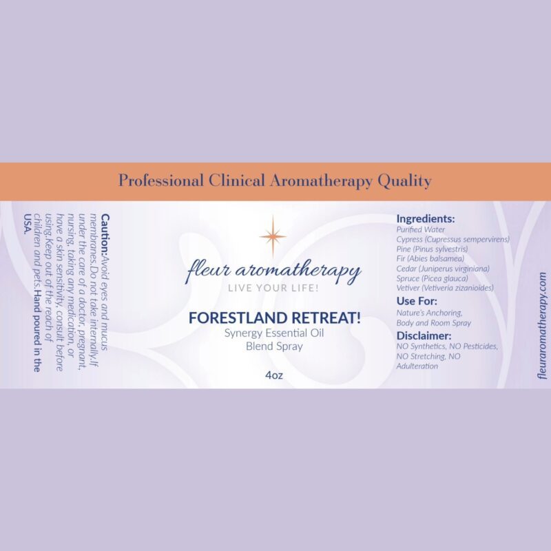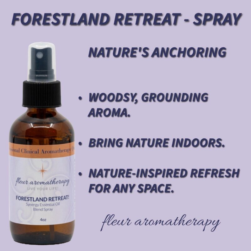| Recommendations: | “This is the perfect synergy blend to anchor you in nature! If you need to unplug from all the hustle and bustle of everyday life this is the blend for you! It will make you feel like you are in a Forestland Retreat on a morning hike getting ready to hug a tree! This spray will aid with adrenal support, emotional and nervous exhaustion, and burnout. It will also promote clarity, focus, and ease a restless mind. This blend spray is diluted in purified water and can be sprayed directly on the skin (avoiding the eye area), around your home, office, car, or anywhere you need to ANCHOR YOURSELF IN NATURE!” Fleur Abajian RA (Registered Aromatherapist). |