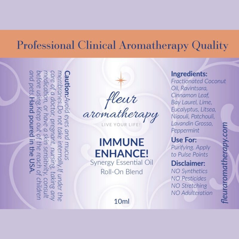 | Recommendations: | “This intense synergistic blend is antiviral, antibacterial, and antiseptic. It is an ideal blend for anyone that is feeling ‘Under the Weather’ due to congestion, sinus, fever, colds, flu, and viruses. In these times of people being more aware of their health, this is the ideal roll-on blend to boost immunity and purify and keep sickness at bay. This roll-on blend is diluted in a 10% dilution in fractionated coconut oil and can be applied directly to the skin. Apply to temples, under the nose, upper chest area, wrists, and the soles of the feet. A must have ‘Go To’ blend, great to travel with to keep germs away and to keep yourself purified and your IMMUNITY ENHANCED!” Fleur Abajian RA (Registered Aromatherapist). |