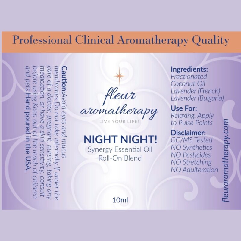 | Recommendations: | “The beautiful synergy of these 2 Lavender essential oils is a must have for every household. The antidepressant, sedative, calming and restorative effects of this blend will help you unwind after the day’s stresses. This roll-on blend is diluted in a 10% dilution in fractionated coconut oil and can be applied directly to the skin. Apply to the temples, under the nose, wrists, upper chest area, and the soles of the feet. I personally like to apply this after I have my evening bath, after applying I can literally feel the daily stress melt away and feel my ‘Chi’ (energy) once again aligning before I drift into a peaceful and restorative sleep – NIGHT NIGHT!” Fleur Abajian RA (Registered Aromatherapist). |