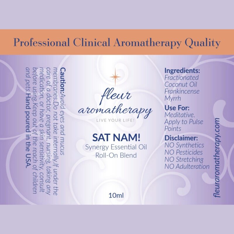 | Recommendations: | “SAT NAM! To all my fellow yogis out there! Sat means ‘TRUTH’ and Nam means ‘IDENTITY.’ So, Sat Nam literally means ‘TRUTH IS MY IDENTITY.’ I personally do my yoga practice every morning. It grounds me, energizes me, stretches me out and enables my creativity to flow. I have so many revelations when I am doing yoga. Things that I am undecided on or need more clarity on get resolved during my yoga practice. Then ‘BAM,’ I know instinctively what to do in a situation. It truly is amazing! So, this blend is absolutely dedicated to the wonderful practice of yoga! This resinous blend will promote calmness, grounding, it eases a restless mind and nervous tension and encourages deep and relaxed breathing. It is also a sedative, anti-inflammatory and a general analgesic. This roll-on blend is diluted in a 10% dilution in fractionated coconut oil and can be applied directly to the skin. Apply to the temples, behind the ears, under the nose, upper chest area, wrists, behind the knees, and the soles of the feet – SAT NAM!” Fleur Abajian RA (Registered Aromatherapist). |